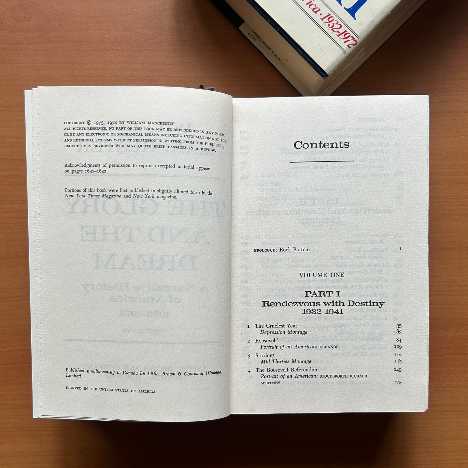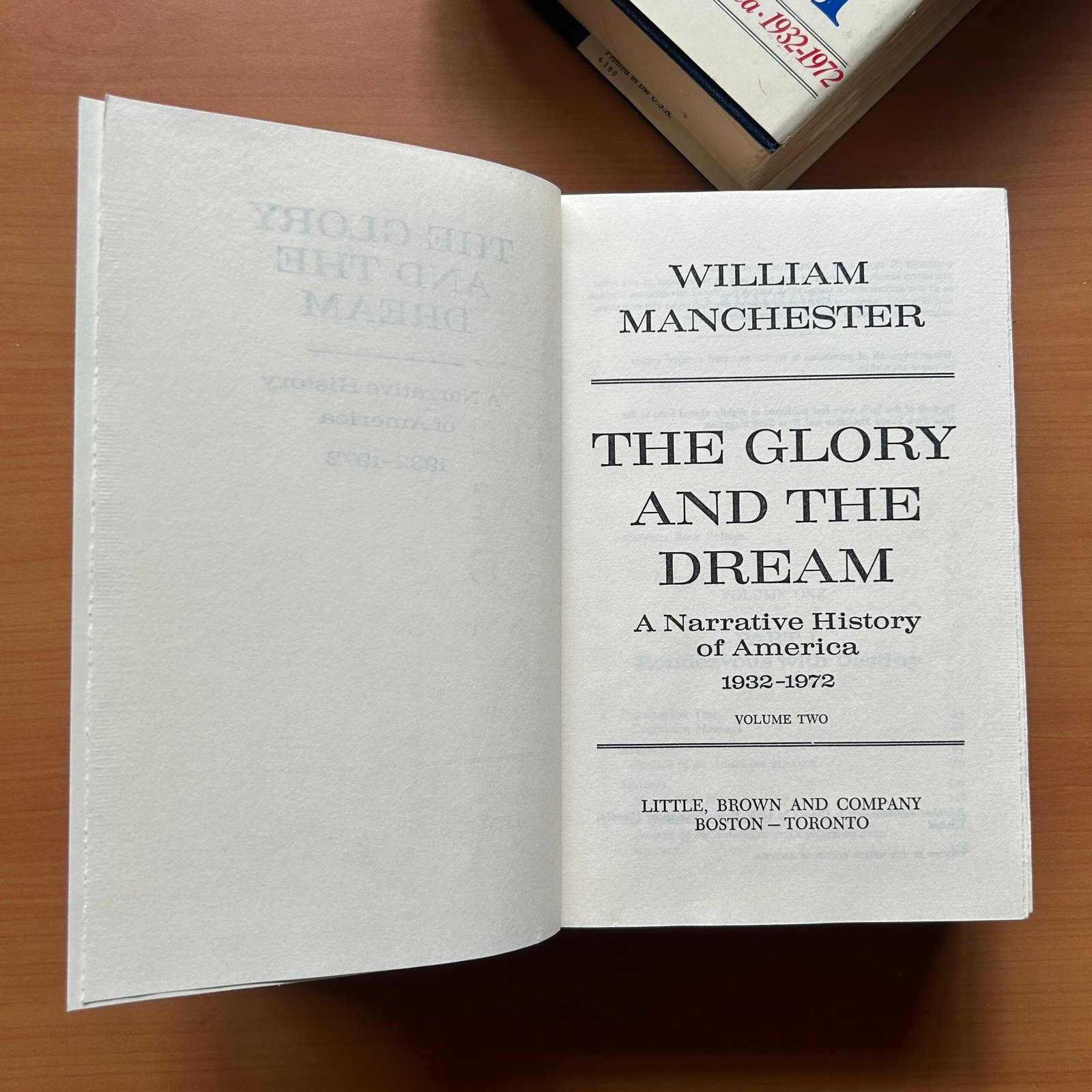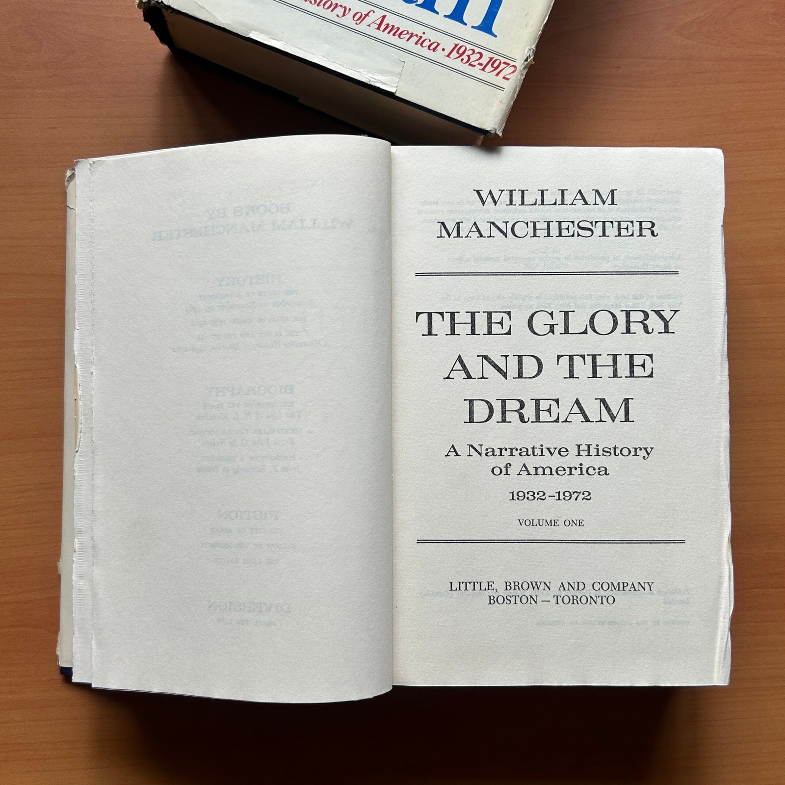 The Glory and the Dream: A Narrative History of America, 1932–1972 by William Manchester is a sweeping and masterfully written account of one of the most transformative periods in American history. Published in 1974 by Little, Brown and Company, this two-volume hardcover set (6 × 9 inches) offers an expansive and deeply engaging narrative that spans four critical decades—from the Great Depression to the Vietnam era.