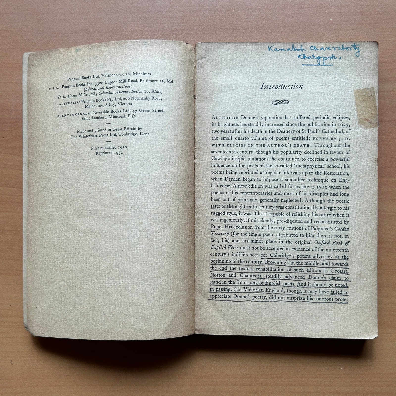 John Donne, edited by John Hayward and published by Penguin Books in 1952, is a refined 182-page paperback collection of the works of one of England’s greatest metaphysical poets. This volume presents Donne’s poetry and prose with clarity and scholarly insight, making it essential for readers of classic poetry and English literature.